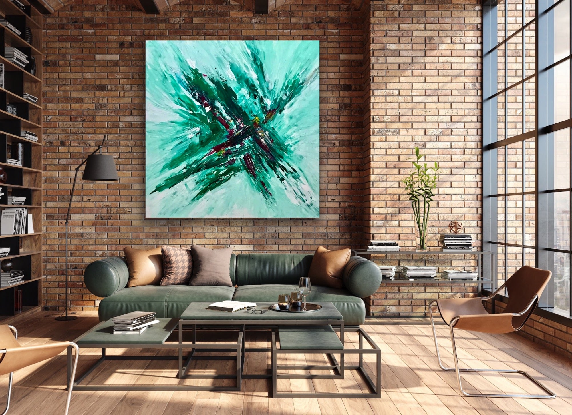 Evoking a "Heavenly" Feeling: The title "Heavenly" perfectly aligns with Hammer's artistic intent, as the sweeping strokes can be interpreted as celestial beams of light, or the vibrant color combinations hinting at divine or spiritual realms. The overall effect aims to bring a "tonic and sweet atmosphere" to any interior, a hallmark of Hammer's work.