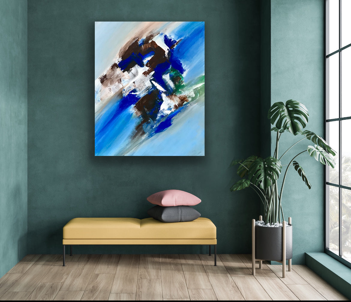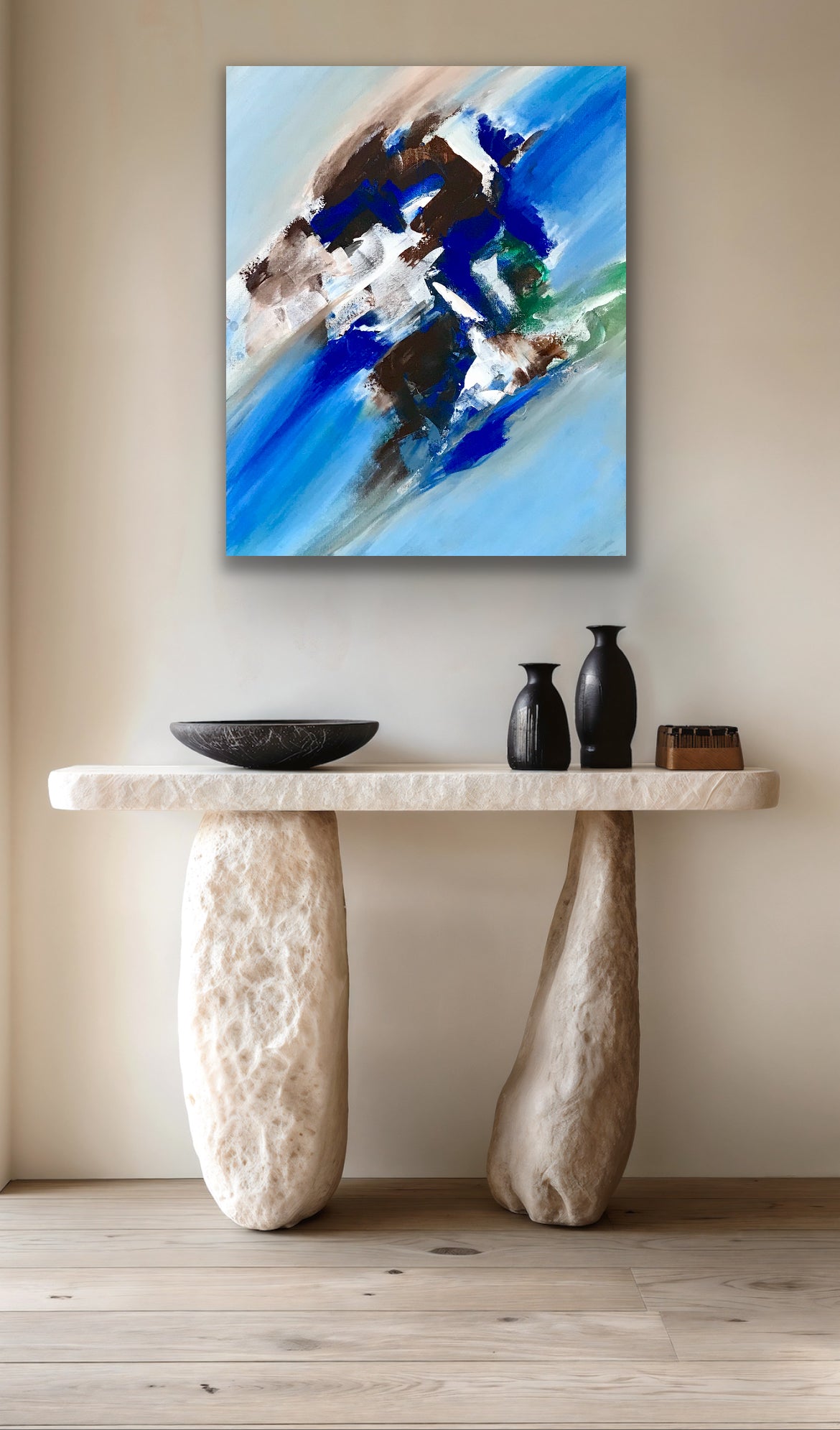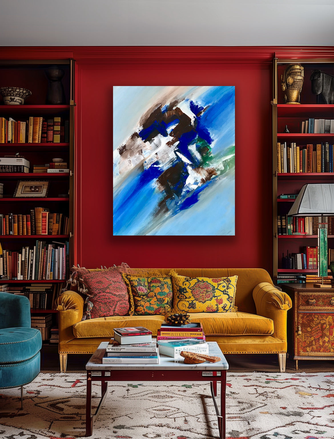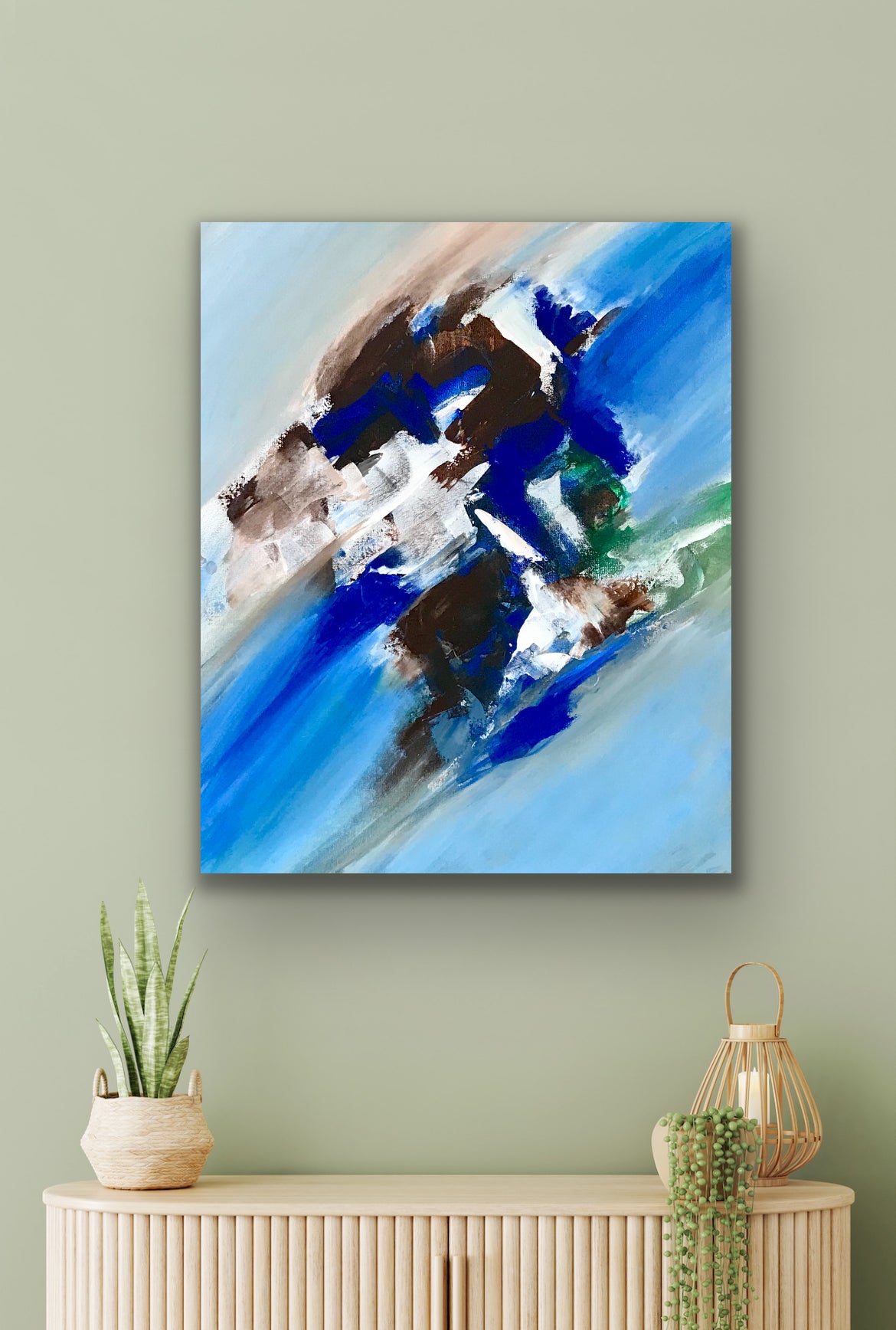 Exquisitely crafted on top-quality canvas, "Heaven Sent", a modern abstract painting brings a harmonious fusion of soothing yet powerful aesthetics to any home or office space. The captivating combination of flowing blue, brown, and white hues creates an ethereal atmosphere that both relaxes and energizes.