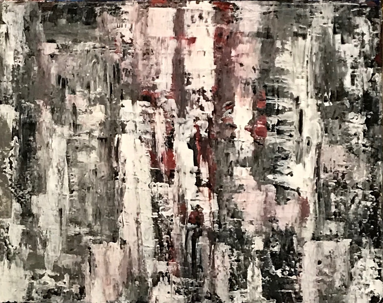 This is a Tony Hammer abstract acrylic painting for your home or office. This piece has a power descending design aesthetic. The colors streak and overlap, while also being contrasted by subtle color shifts, lines and patterns. The accents of black, grey, white and magenta is both subtle and striking. Fragments of neutral and bright colors streak and breeze across the surface creating a unique overall piece. It is truly an abstract painting like no other that will enhance your space.